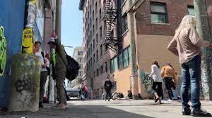 このようにきちんと境目があることからも、彼ら薬物中毒者ができるだけ一般社会に悪影響を与えたくない、目立ちたいわけでもないことがわかる。この手前のガスタウンは気楽に大麻の匂いを嗅ぎながら踊り狂う、ちょうど中間の治安をしている街で、「治安のいい中心街→ダンスやアルコールを楽しむ繁華街→薬物中毒者たちが横たわるダウンタウン」と、綺麗に棲み分けがなされていることは興味深い。中間にあたるガスタウンもまた見応えあるスポットですが、今回は主題がブレるので割愛。街の人たちは、だいたい腰がぐいっと曲がってゾンビのような姿に。